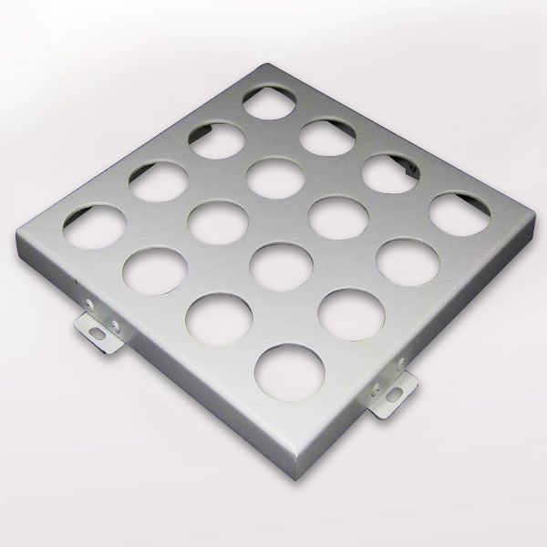 與常規(guī)鋁單板相比,沖孔鋁單板的特征就是表面形狀各異的沖孔(包括圓孔、方孔、五角星、六邊形孔等),裝飾效果突出,也能夠在一定程度上起到降低噪音的作用。集裝飾性與實用性于一體,沖孔鋁單板在工程裝飾中使用的越來越多。