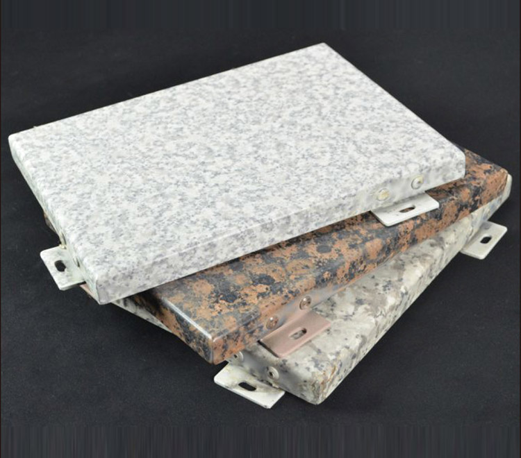 仿石紋氟碳鋁單板的主要特征是鋁單板表面逼真的石紋色,裝飾效果喜人,且質(zhì)量輕、安裝方便,幾乎可以替代大理石這種幕墻材料。它主要通過熱轉(zhuǎn)印等工藝,把石紋色轉(zhuǎn)印到鋁板表面,然后再噴上氟碳罩光漆,經(jīng)過多次噴涂和烘烤,終客戶定制的石紋效果。