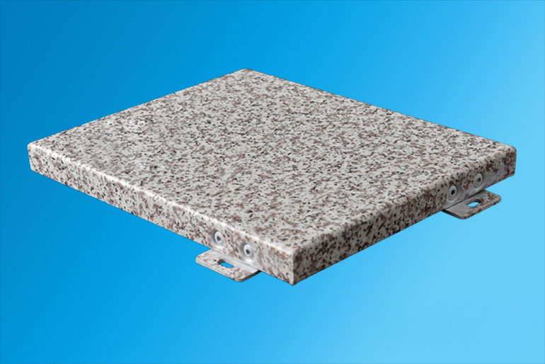 仿石紋氟碳鋁單板的主要特征是鋁單板表面逼真的石紋色,裝飾效果喜人,且質量輕、安裝方便,幾乎可以替代大理石這種幕墻材料。它主要通過熱轉印等工藝,把石紋色轉印到鋁板表面,然后再噴上氟碳罩光漆,經過多次噴涂和烘烤,終客戶定制的石紋效果。